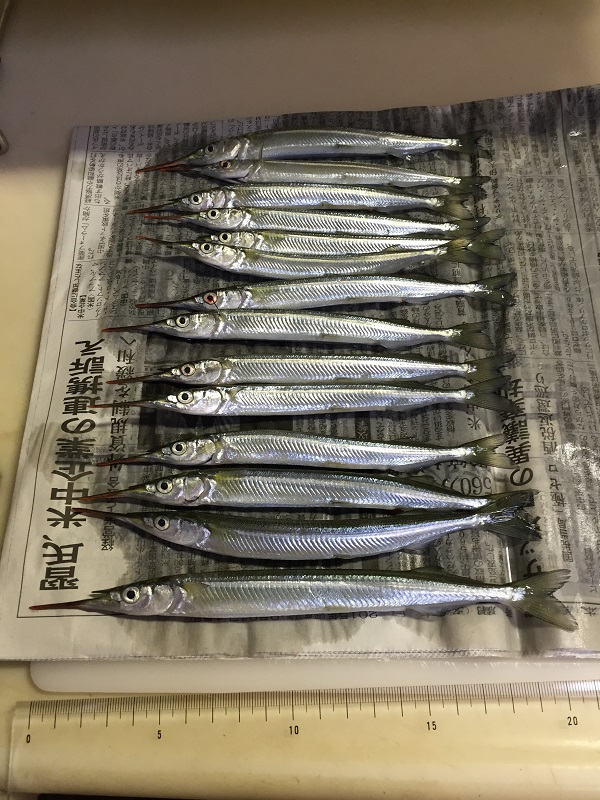 やっぱり、、、と思っていると、来たーサヨリ。しかも大きい!