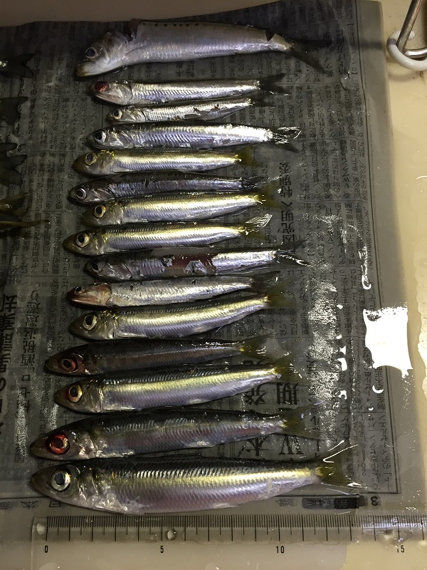 それからカタクチイワシからマイワシが釣れたのですが、そんなにたくさんアジやイワシを持って帰る事ができないので、